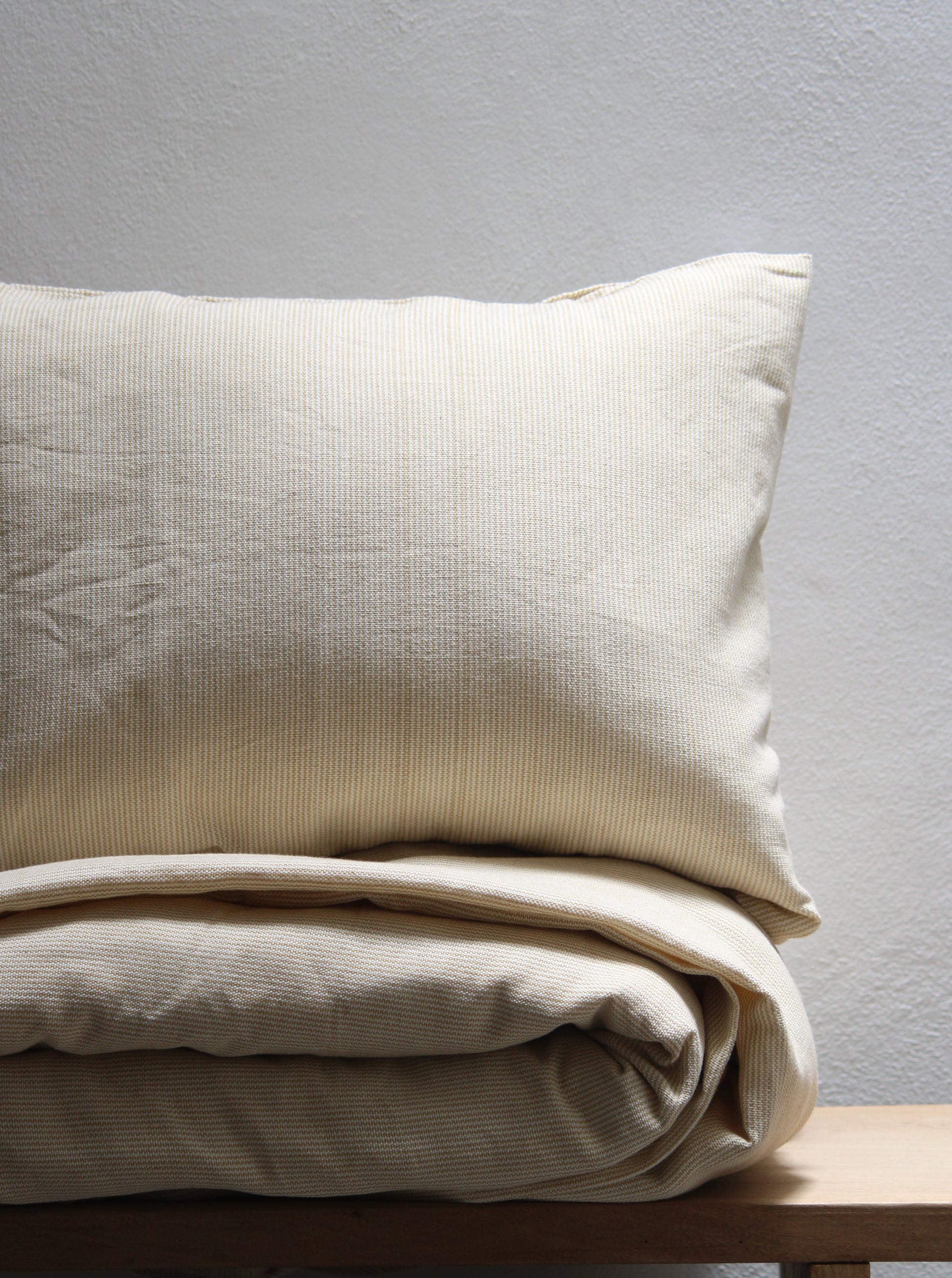 This product is carefully crafted in pedal loom with 100% Cotton. Includes one duvet and two pillowcases.