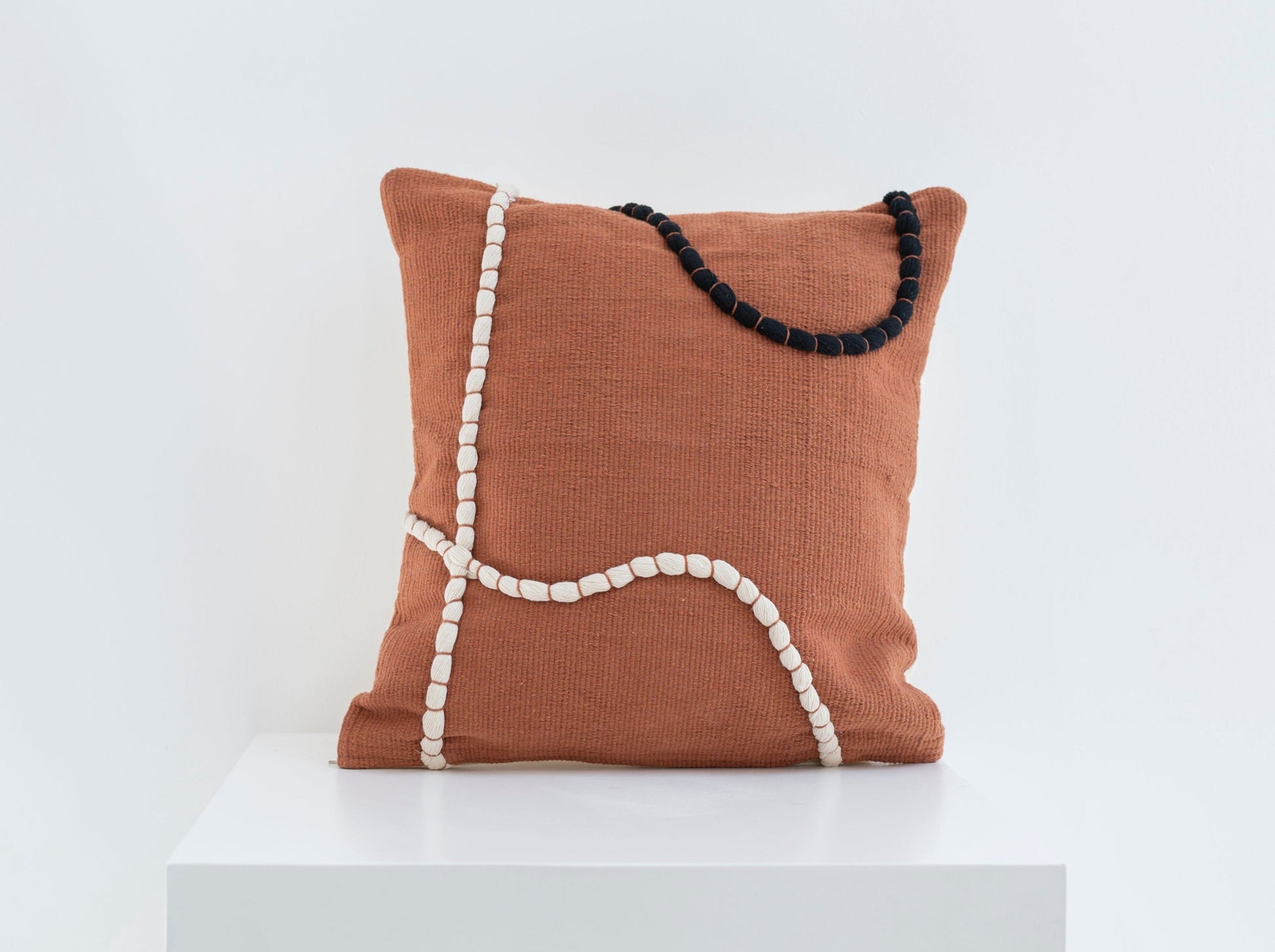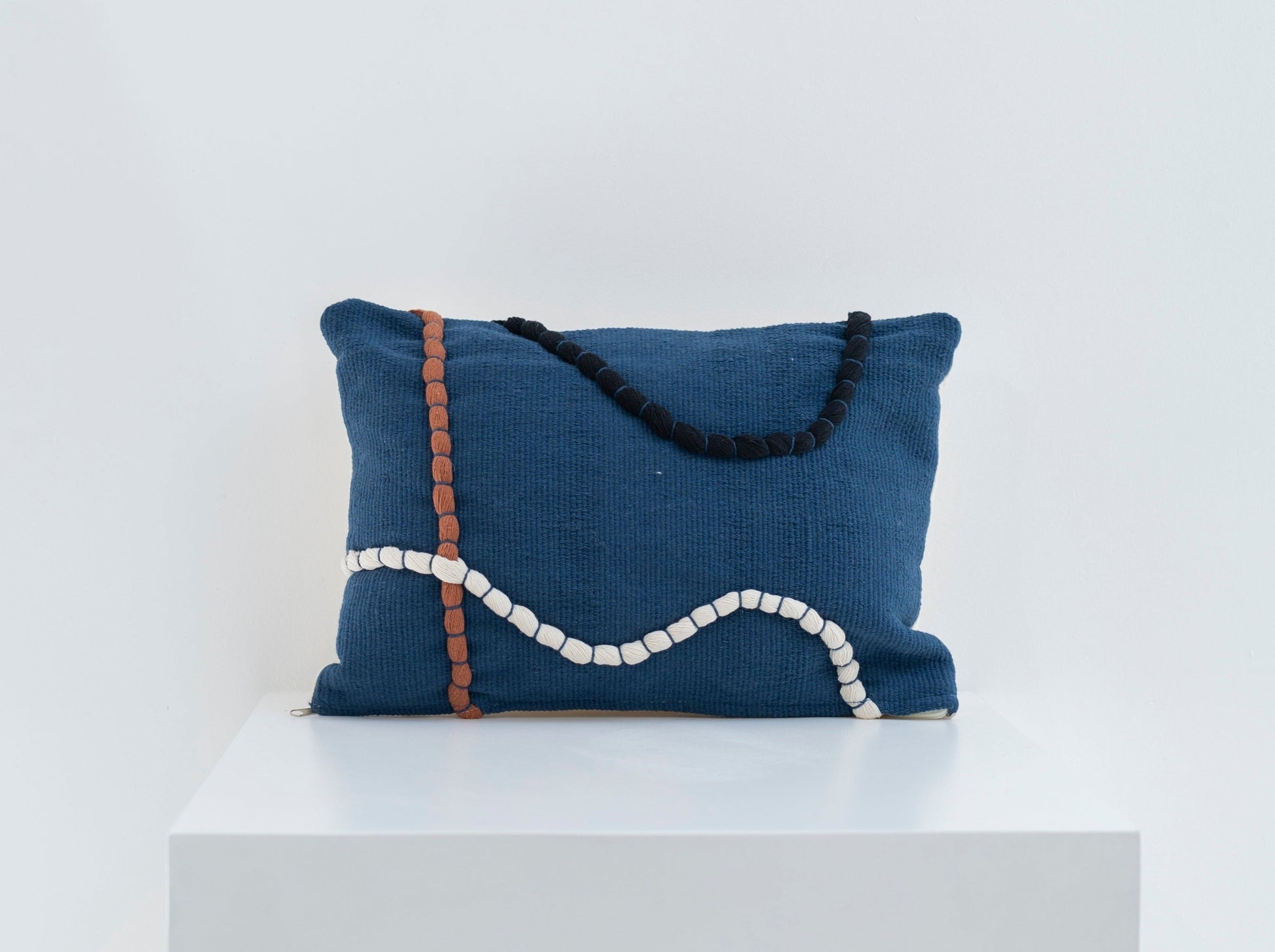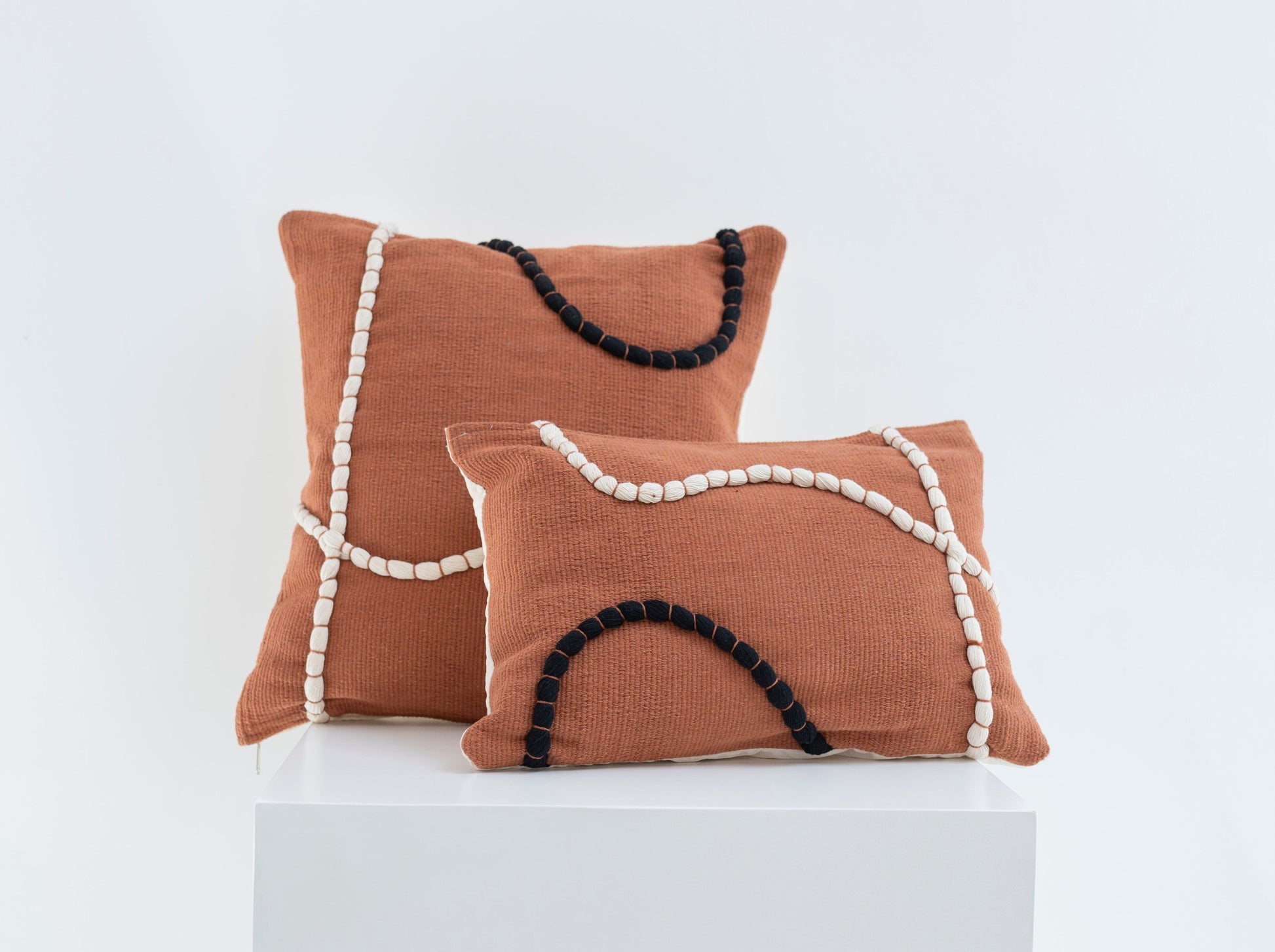 The inspiration for this pillow cover is the Coralillo, a snake of great significance in pre-Hispanic culture, associated with various religious, cosmogonic, medicinal, and artistic symbolism. Its presence in these cultures reflects its deep symbolic and cultural importance in the region.