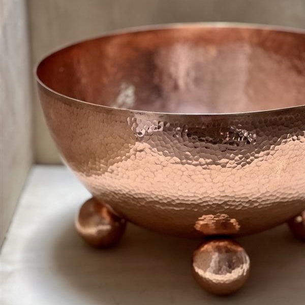 Cosmos, a fruit bowl crafted in warm, gleaming copper. Its elegant design features a perfectly balanced spherical base that feels both modern and timeless.